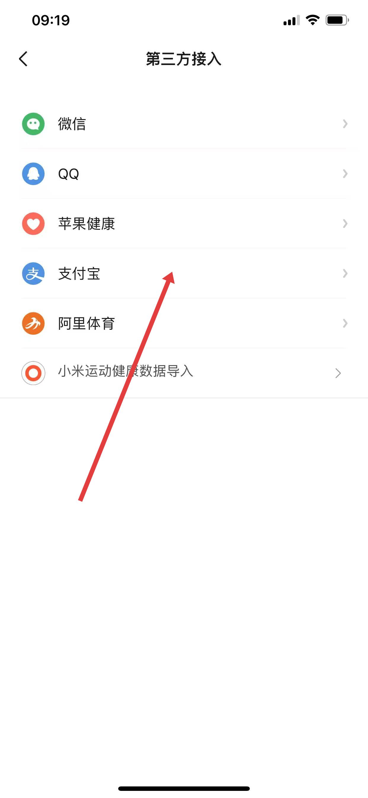 1、打開小米運動健康A(chǔ)PP,進入個人頁面 ,找到并點擊第三方接入選項。