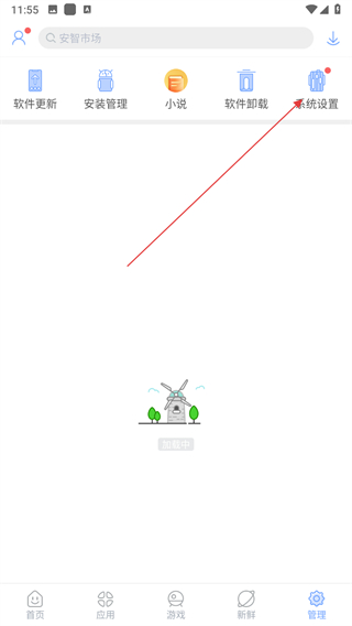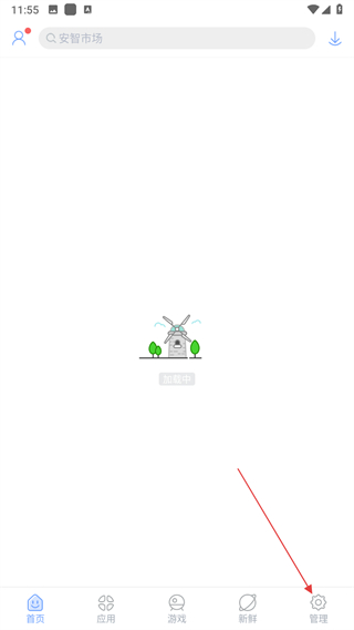 1、打開安智市場應用,點擊底部導航欄的管理選項,進入管理頁面。