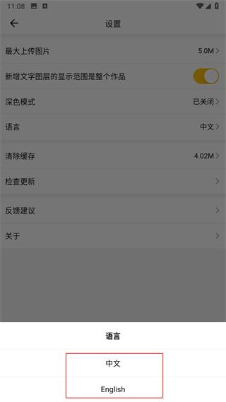 4、在語言選擇頁面,可選擇中文或English。