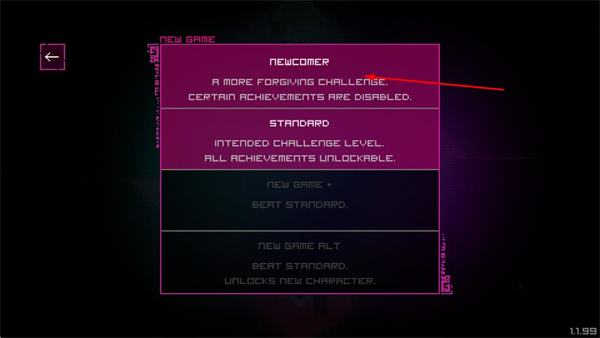 2、在難度選擇頁面,挑選newcomer難度,進(jìn)入對(duì)應(yīng)的游戲冒險(xiǎn)場景。