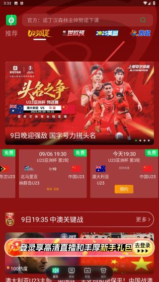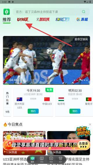1、打開愛奇藝體育APP,登錄賬號(hào)進(jìn)入到首頁(yè),在導(dǎo)航欄中找到并點(diǎn)擊國(guó)足的標(biāo)簽。