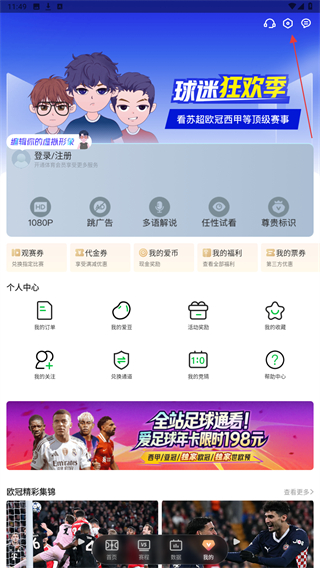 1、打開愛奇藝體育APP,進(jìn)入首頁(yè)內(nèi)點(diǎn)擊下方我的功能圖標(biāo)。