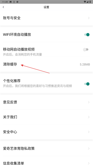 3、進(jìn)入設(shè)置的界面內(nèi),找到并點(diǎn)擊清除緩存的功能按鈕。
