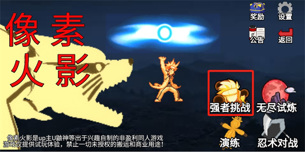 像素火影紅面具是一款能夠自選角色的競技冒險(xiǎn)主題游戲,玩家將可以在游戲中進(jìn)行各種不同的技能展示,這些不同的技能會給玩家以不同的冒險(xiǎn)體驗(yàn)感,同時(shí),玩家們還將可以自由的進(jìn)行角色的服飾裝扮哦!