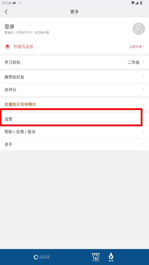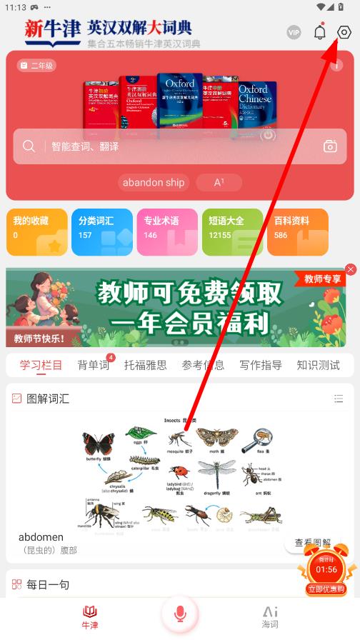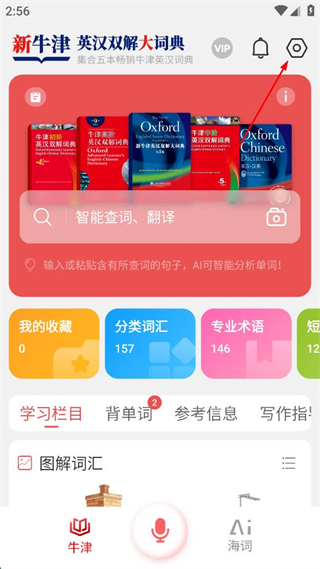 1、打開(kāi)新牛津英漢雙解大詞典APP,點(diǎn)擊右上角設(shè)置圖標(biāo),進(jìn)入更多界面。