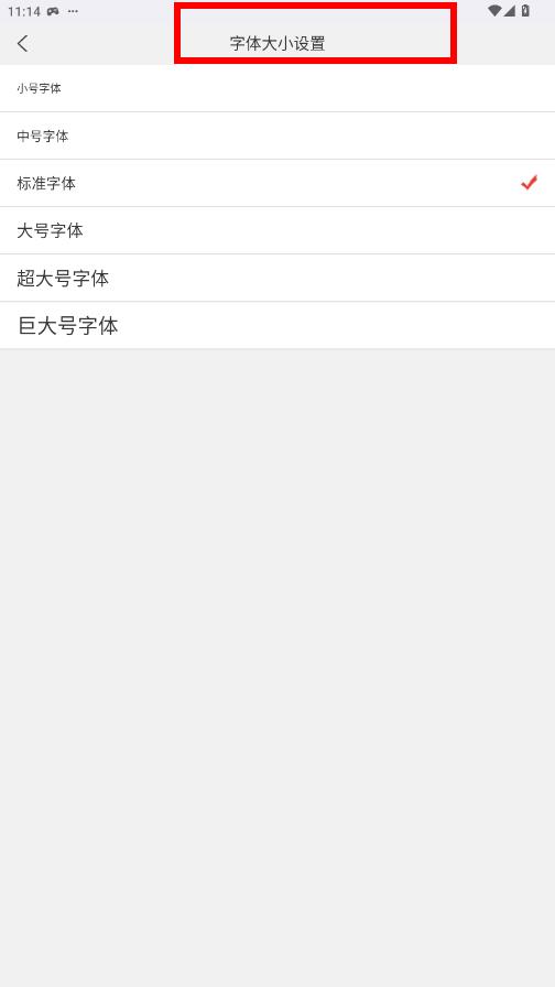 4、在字體大小設(shè)置頁(yè)面,選擇所需的字體大小,即可完成設(shè)置。