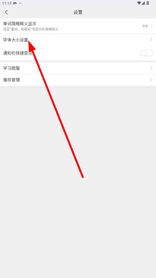 3、在設(shè)置界面里,點(diǎn)擊字體大小設(shè)置選項(xiàng),進(jìn)入字體選擇頁(yè)面。