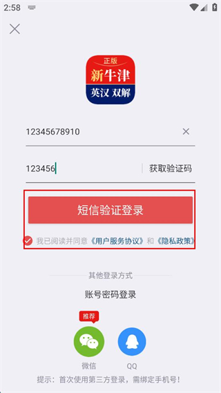 4、勾選同意協(xié)議,短信驗(yàn)證登錄按鈕,完成賬號(hào)登錄操作。