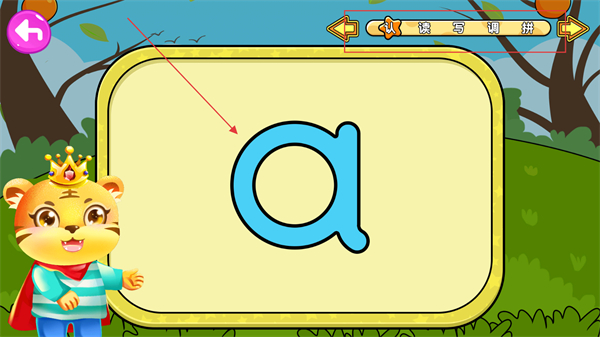 4、在單韻母學(xué)習(xí)頁面可進(jìn)行認(rèn)、讀、寫、調(diào)、拼等操作。