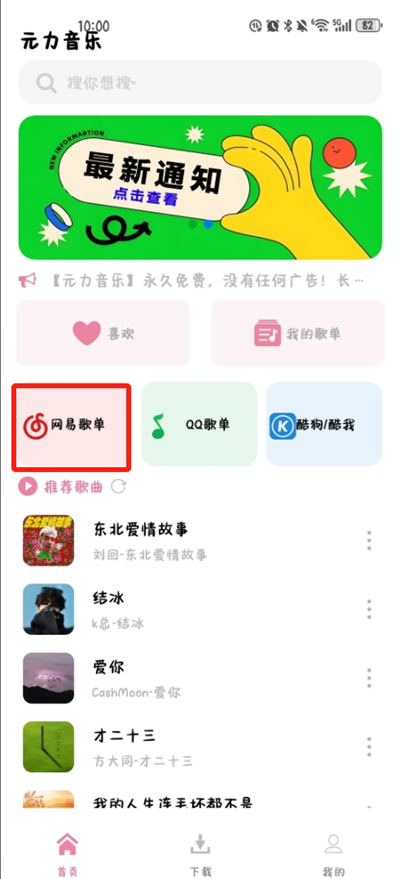 9、接著返回主頁面的首頁就可以點擊網(wǎng)易云音樂中進行查看,這時候?qū)氲母鑶味伎梢钥吹搅耍?
