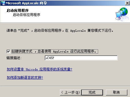 再下一步主要是你是否要保存Applocale對你現在所設置的軟件的語言轉換設置保存并建立一個快捷鍵,這樣就不用每次要重新啟動Applocale對軟件進行亂碼轉換設置了。以后只要點擊快捷鍵按照以前的設置就可以直接轉換并使用軟件。