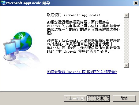 怎么辦呢?其實很簡單,只要用一個3M大小的軟件,微軟出的AppLocale就可以輕松解決(也支持其它相關程序比如游戲程序,另外也支持其它語種在中文簡體下亂碼的問題,軟件網上很好找,大家可以自己找下載地址)。安裝后運行該軟件,點“下一步”