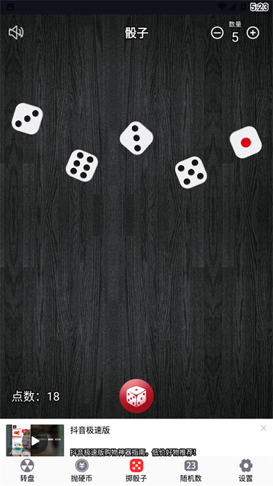 擲骰子可以在聚會(huì)喝酒或者娛樂(lè)的時(shí)候使用,用戶可以自己選擇骰子的數(shù)量,查看骰子的點(diǎn)數(shù);