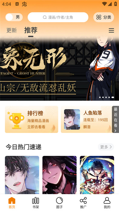 3、點(diǎn)擊排行榜,就可以查看平臺(tái)熱門作品,這樣就可以不用找就能夠看到熱門的漫畫作品;