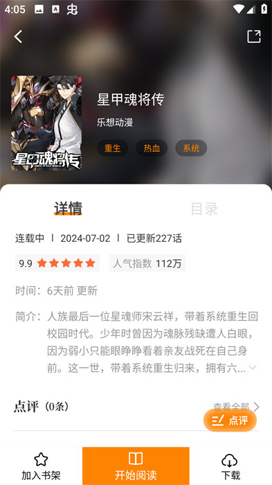 4、進(jìn)入到漫畫詳情界面之后,就可以點(diǎn)擊下方的【開始閱讀】欣賞漫畫內(nèi)容。