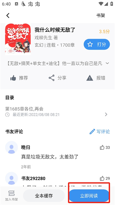 3、在詳情界面點(diǎn)擊下方的【立即閱讀】;
