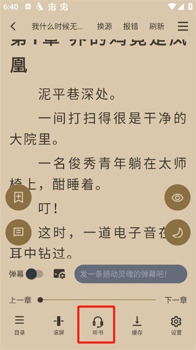 5、最后我們點(diǎn)擊屏幕中間,就可以喚出功能界面,在其中點(diǎn)擊【聽書】就可以開啟聽書之旅。