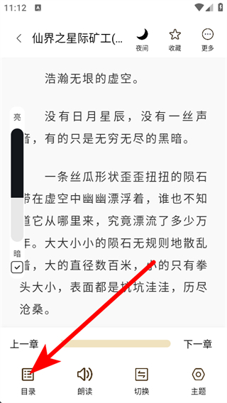 3、在閱讀界面,點(diǎn)擊底部目錄選項,進(jìn)入章節(jié)目錄頁面。
