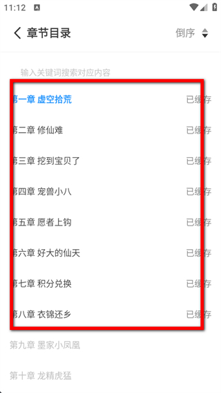 4、在章節(jié)目錄頁面,即可查看書籍的各章節(jié)列表。