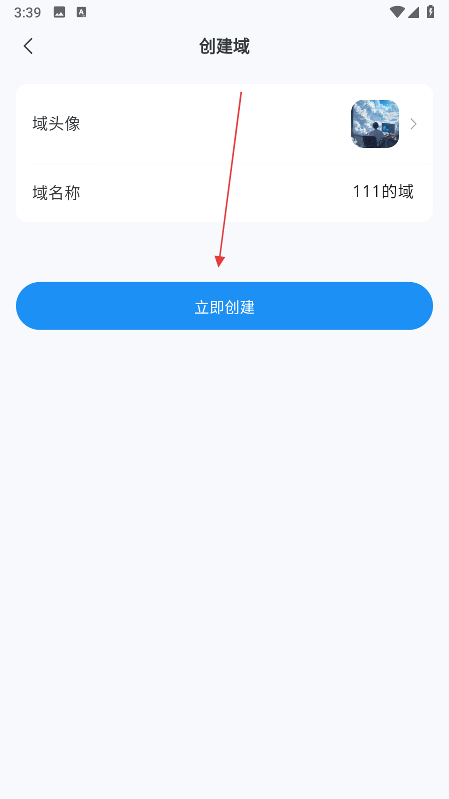 3、在創(chuàng)建域頁面完成域頭像和域名稱的設(shè)置后,點(diǎn)擊立即創(chuàng)建按鈕。