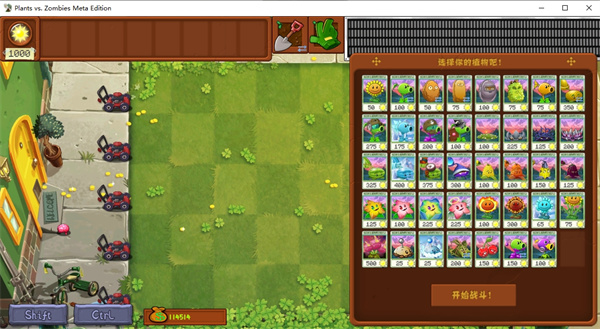 3、隨后就可以放置你的植物,初始會有一千的陽光,但是并沒什么用,因為游戲一開始難度就很高;