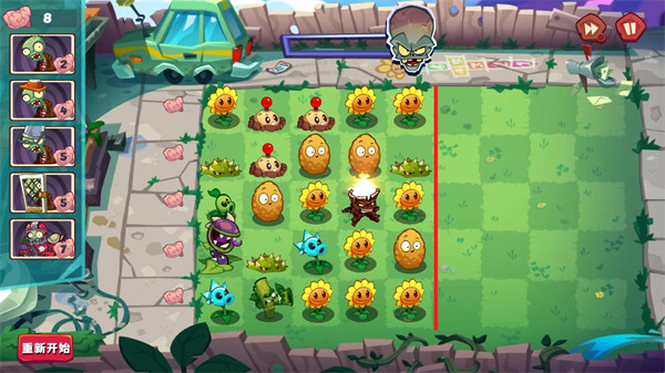 玩家之間可以互相對(duì)戰(zhàn),一方選擇植物、一方選擇僵尸,兩人進(jìn)行對(duì)戰(zhàn)就可以自由體驗(yàn);