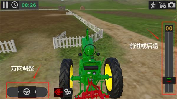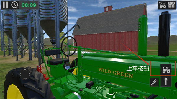 3、可以點擊下圖中標(biāo)記的上車按鈕進(jìn)行上車,以快速的開啟自己的駕駛農(nóng)用機之旅;