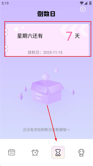 3、點(diǎn)擊底部沙漏圖標(biāo),進(jìn)入倒數(shù)日界面。