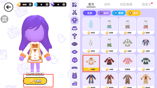 2、需要選中場景內(nèi)自己喜歡的服飾,選中后,點(diǎn)擊屏幕左下方的金幣按鈕即可實(shí)現(xiàn)服飾的購買