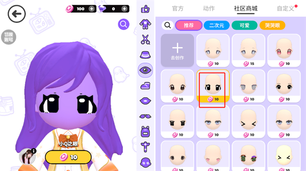 4、能夠通過不同五官按鈕的選擇來進(jìn)行五官的自定義,如給自己的角色選擇一雙大眼睛等。
