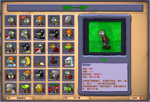 4、點(diǎn)擊僵尸圖鑒中將會(huì)看到所有僵尸圖鑒,同時(shí)只需要直接點(diǎn)擊僵尸查看他們的所有屬性。