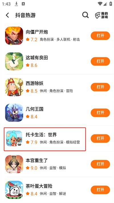 3、進(jìn)入后將會(huì)看到超多抖音中較為熱門的游戲選擇,我們以托卡生活世界游戲?yàn)槔?