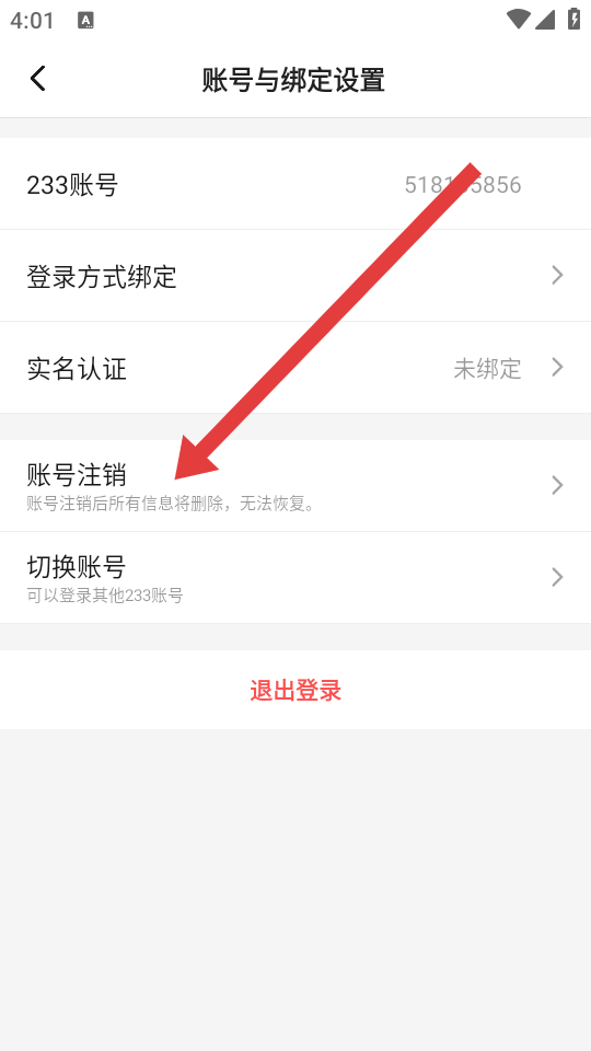 3、在賬號(hào)與綁定設(shè)置頁(yè)面,點(diǎn)擊賬號(hào)注銷選項(xiàng),進(jìn)入賬號(hào)注銷協(xié)議的頁(yè)面。