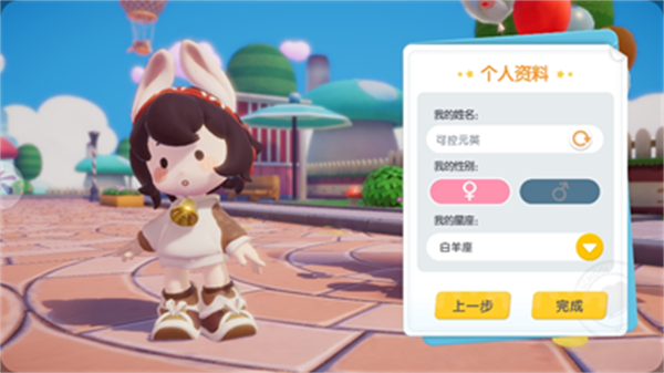 3、選擇好角色形象后進(jìn)行個(gè)人資料的填寫,還可以選擇不同的性別;