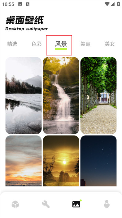 目前軟件內(nèi)整理的壁紙資源豐富多樣,并且給用戶(hù)呈現(xiàn)出了很多高清的桌面壁紙,任何狀態(tài)下都能裝飾設(shè)備頁(yè)面;