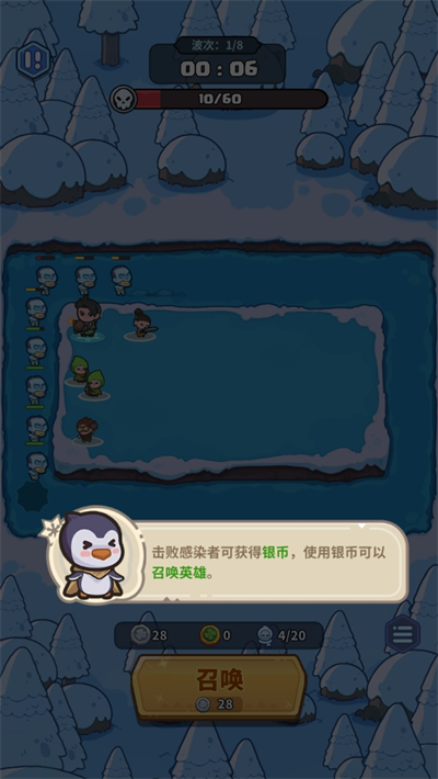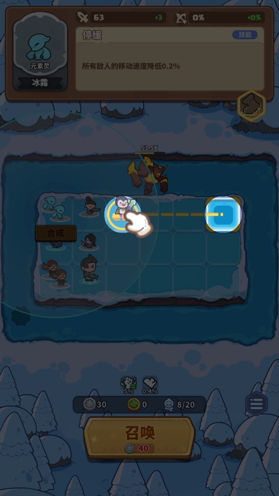 極寒之地下進(jìn)行的挑戰(zhàn),通過(guò)不斷的合成放置進(jìn)行塔防攻擊守衛(wèi)領(lǐng)土;