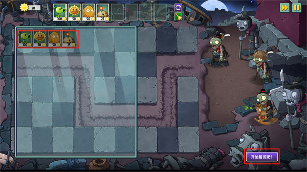 1、進(jìn)入到場(chǎng)景內(nèi)之后,玩家將需要進(jìn)行植物的選擇,進(jìn)行點(diǎn)擊即可,點(diǎn)擊好之后,進(jìn)行右下角按鈕的點(diǎn)擊;