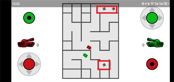 其中的紅色坦克就是你的角色,你可以控制角色去進(jìn)行戰(zhàn)斗,通過(guò)炮彈射擊攻擊對(duì)方的坦克;