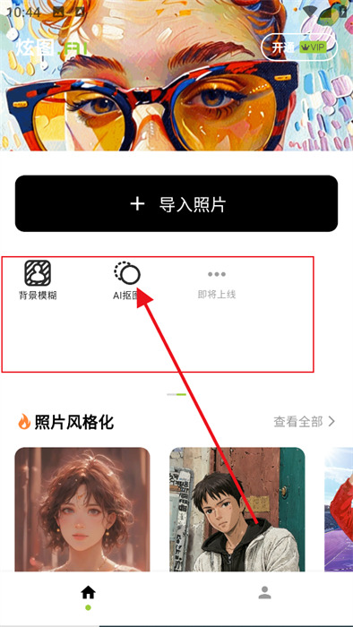 1、首先,你需要在本站內(nèi)將軟件下載,并進(jìn)入到首頁(yè),點(diǎn)擊【ai摳圖】,如下圖;