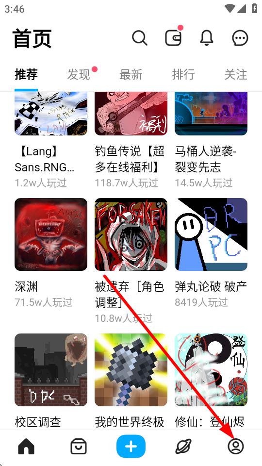 1、打開創(chuàng)游編輯器應用,點擊底部導航欄最右側(cè)的人物圖標,進入個人頁面。