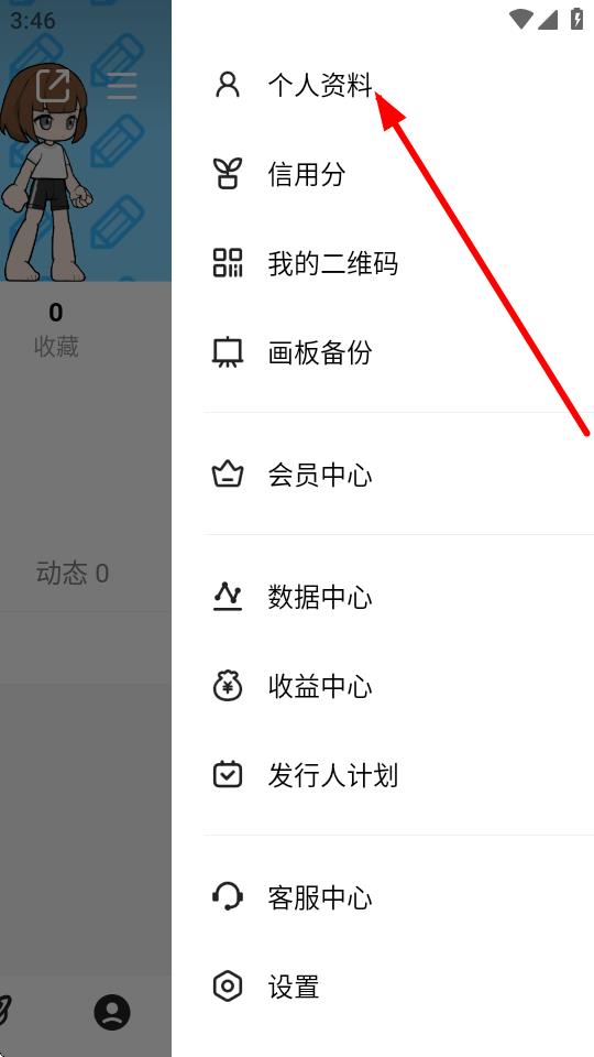 3、在側(cè)邊菜單里,點擊個人資料選項,進入個人資料編輯頁面。