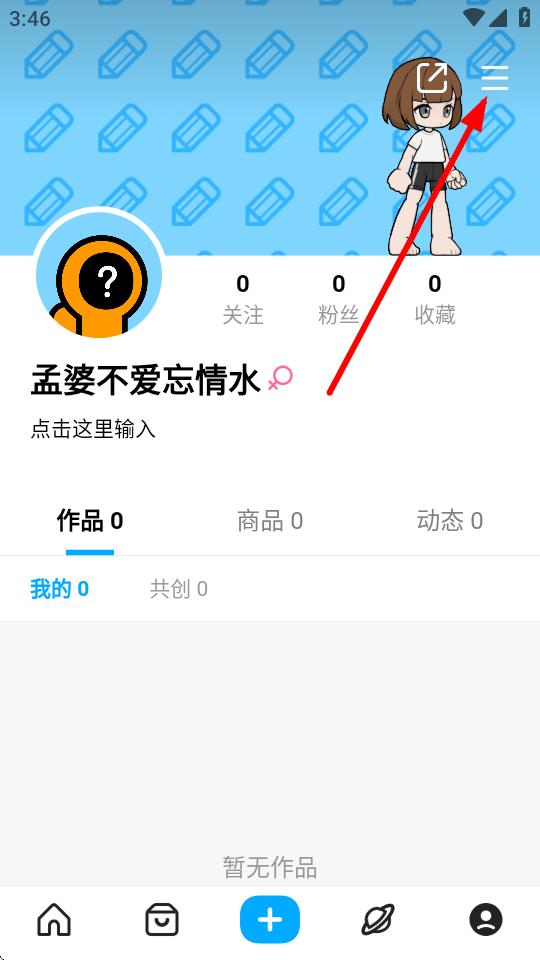 2、在個人頁面中,點擊右上方的三橫線菜單按鈕,展開側(cè)邊菜單。