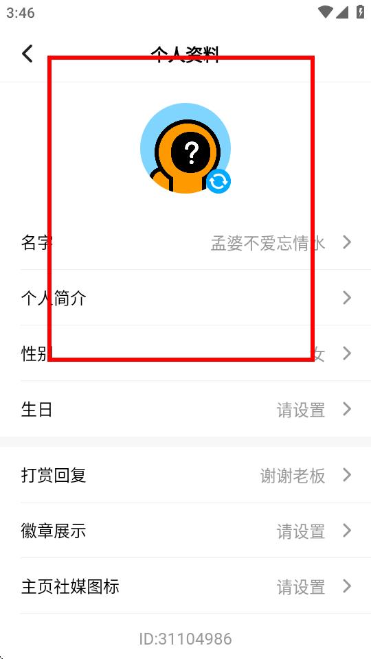 4、在個人資料頁面,可以對頭像、名字、個人簡介、性別等信息進行修改,點擊對應的選項,按提示操作完成修改。
