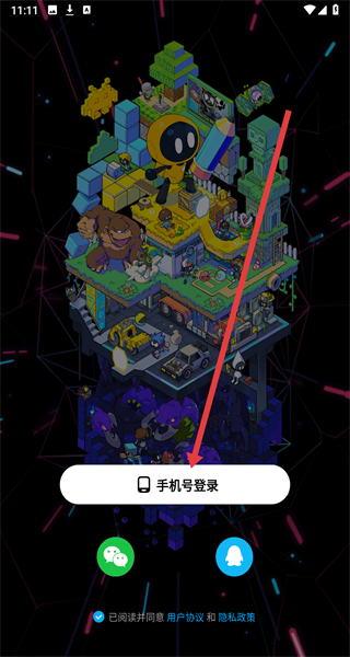 2、在選擇登錄方式頁面中,可以點擊手機號登錄按鈕,進行登錄。