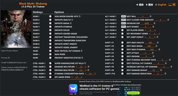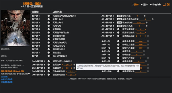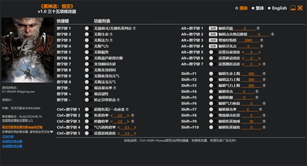 黑神話悟空三十五項(xiàng)修改器作為專業(yè)的風(fēng)靈月影修改器軟件,能夠幫助各位大圣度過難關(guān),不至于出現(xiàn)打不過去的情況,畢竟游戲體驗(yàn)感還是要有的,除了精彩的劇情之外,最有趣的就是打斗體驗(yàn),所以很重要的能打過BOSS才行,才能解鎖后續(xù)的內(nèi)容,在修改其中會(huì)有三十多項(xiàng)可以修改的功能,后續(xù)還將會(huì)添加更多的修改功能,并且支持一鍵開啟一鍵關(guān)閉,非常便捷的操作,讓每位天命人可以不影響游戲操作,在酣暢淋漓的戰(zhàn)斗過程中也可以開啟輔助。