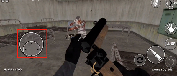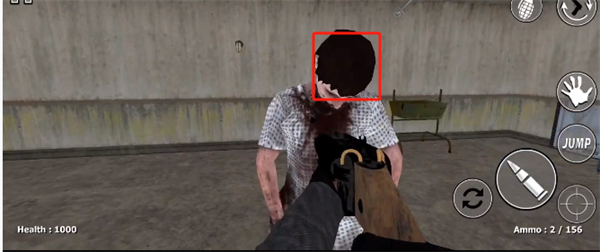 3、不斷的在場景內(nèi)進(jìn)行移動,可能會在移動的過程中遇到一些變異的人,可以通過滑動屏幕的右側(cè)來進(jìn)行僵尸頭部的瞄準(zhǔn);