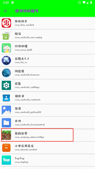 2、在這里可以根據(jù)你們自己的需求選擇想要測試的應(yīng)用,小編在這里用我的世界游戲為例吧;