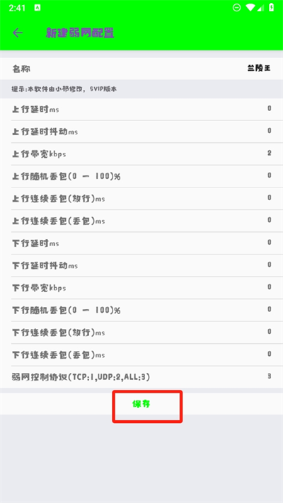 4、進入后將會看到所有的新建弱網(wǎng)配置內(nèi)容,在這里可以根據(jù)自己的需求進行參數(shù)調(diào)節(jié)