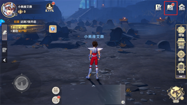 1、進(jìn)入游戲界面后將在右上角看到功能手冊,所有的獎勵都在這里領(lǐng)??;