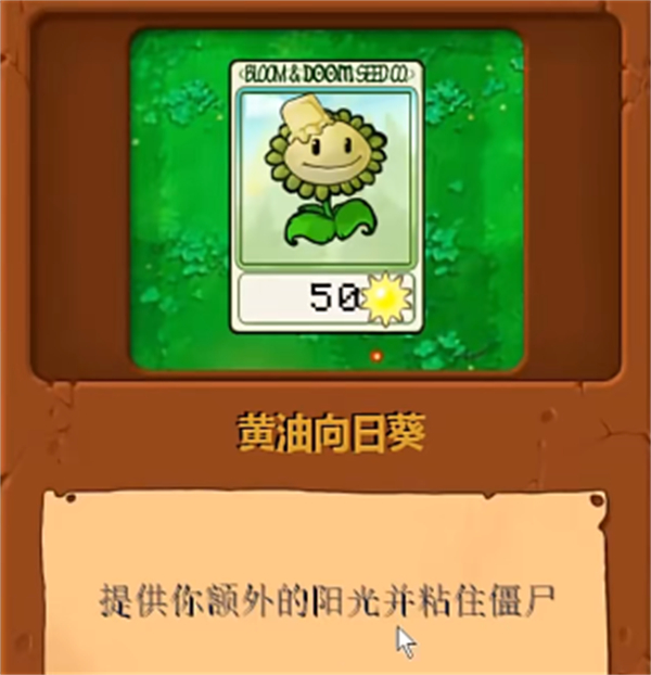2、黃油向日葵:一種全新的向日葵植物,具有黃油投擲的能力,可以用自己頭頂?shù)狞S油來黏住不斷進攻的僵尸們,還能夠進行額外陽光的提供;